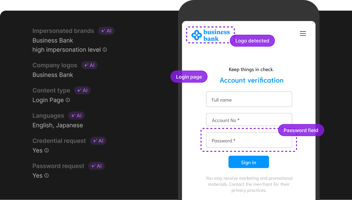 Axur monitors URLs/domains, malware, paid search/ads, social media, fake profiles, and app stores, in addition to other external sources. Our multimodal AI (vision + language) analyzes images, text, and page structure to detect fraud even without direct textual mentions of your brand. With a massive intake of 40+ million new sites per day, Axur spots fake login pages, typosquatting domains, misleading ads, fake profiles, and fraudulent apps — and prioritizes them for action.